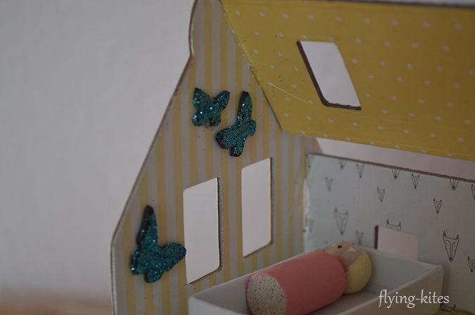 I also found little boxes for the beds and added a few paper accessories to jazz up the houses.
