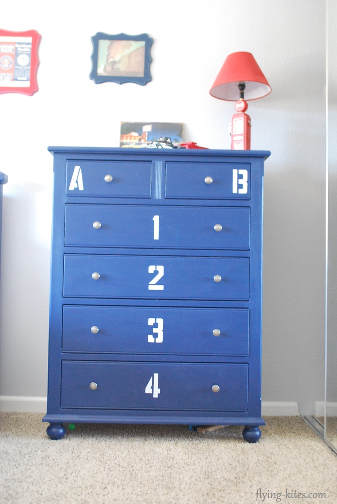 As for the dresser, I actually purchased it for my daughters room. But when I saw a numbered and lettered dresser for a boys room on Pinterest, I knew exactly what I was going to do with that it. And it came out fabulous!