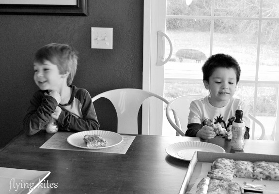 Leave it to my son to start talking about monsters and scaring his guest. Thankfully, before I turned out the lights for them, I explained where my bedroom was in case anyone needed me. I also pointed out the upstairs bathroom (our guest has previously always used the downstairs toilet). Well, it wasn’t thirty minutes after lights out that I heard some crying, so after going in Gabe’s room, hearing the boys’ stories about monsters (complete with our guest’s sniffles), I let our guest call his mom. She was so great and kept calm and chatted with him for a bit. He agreed to finish out the night and after speaking with Gabe about monster stories, we successfully finished out the night.
