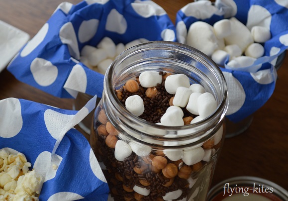 I added to the selection a hot chocolate stir-in mix we had been gifted over Christmas. I believe the mix is made up of marshmallows, chocolate sprinkles, and butterscotch pieces.